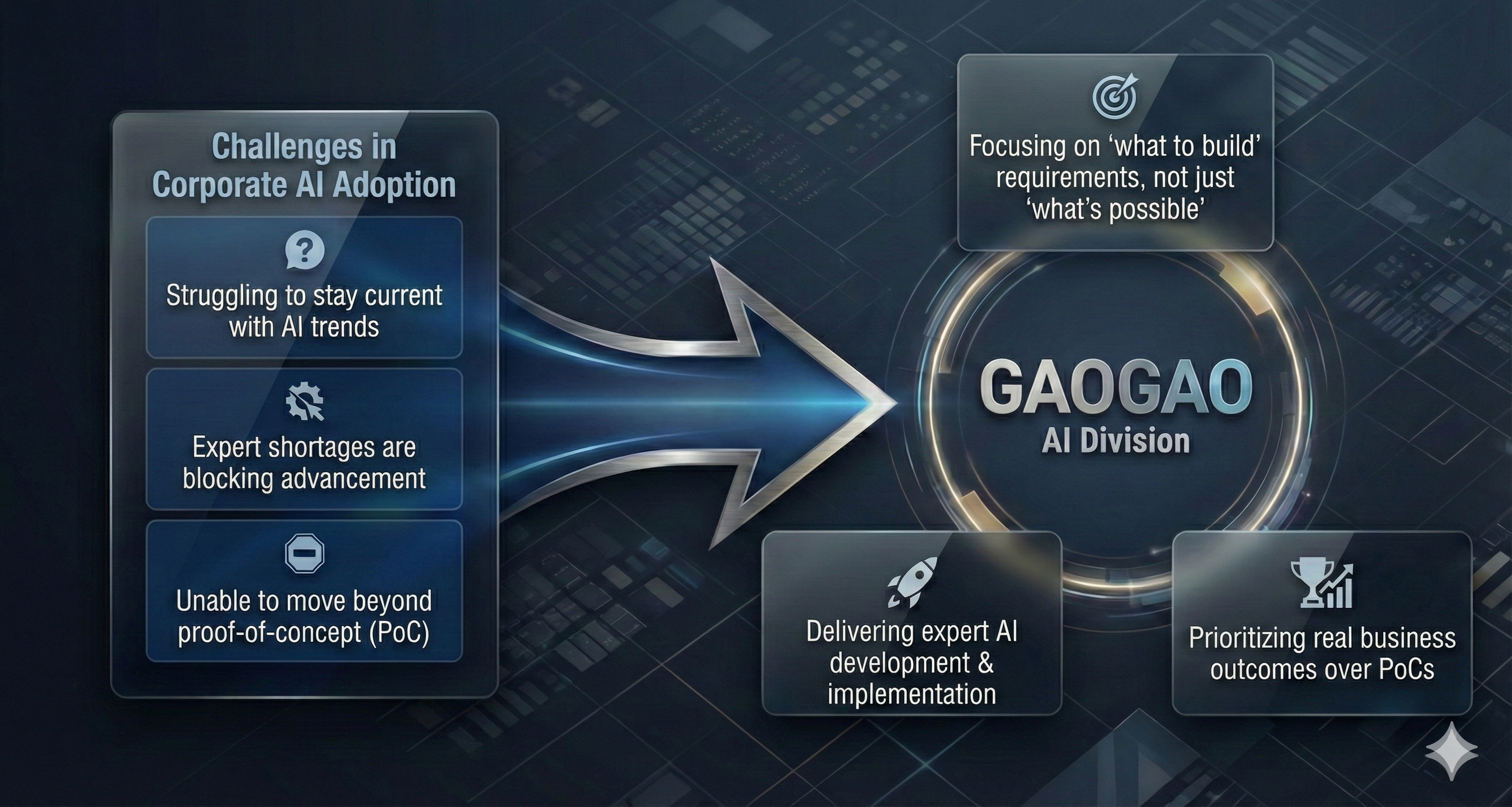 At GAOGAO AI Division, most of our engagements start with consultations like "We have a vague idea but don't know where to start" or "How can we improve efficiency using AI?"